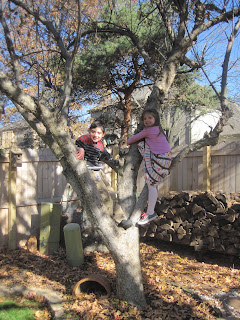 Holli and Ethan playing in Grandma and Grandpa's backyard.
